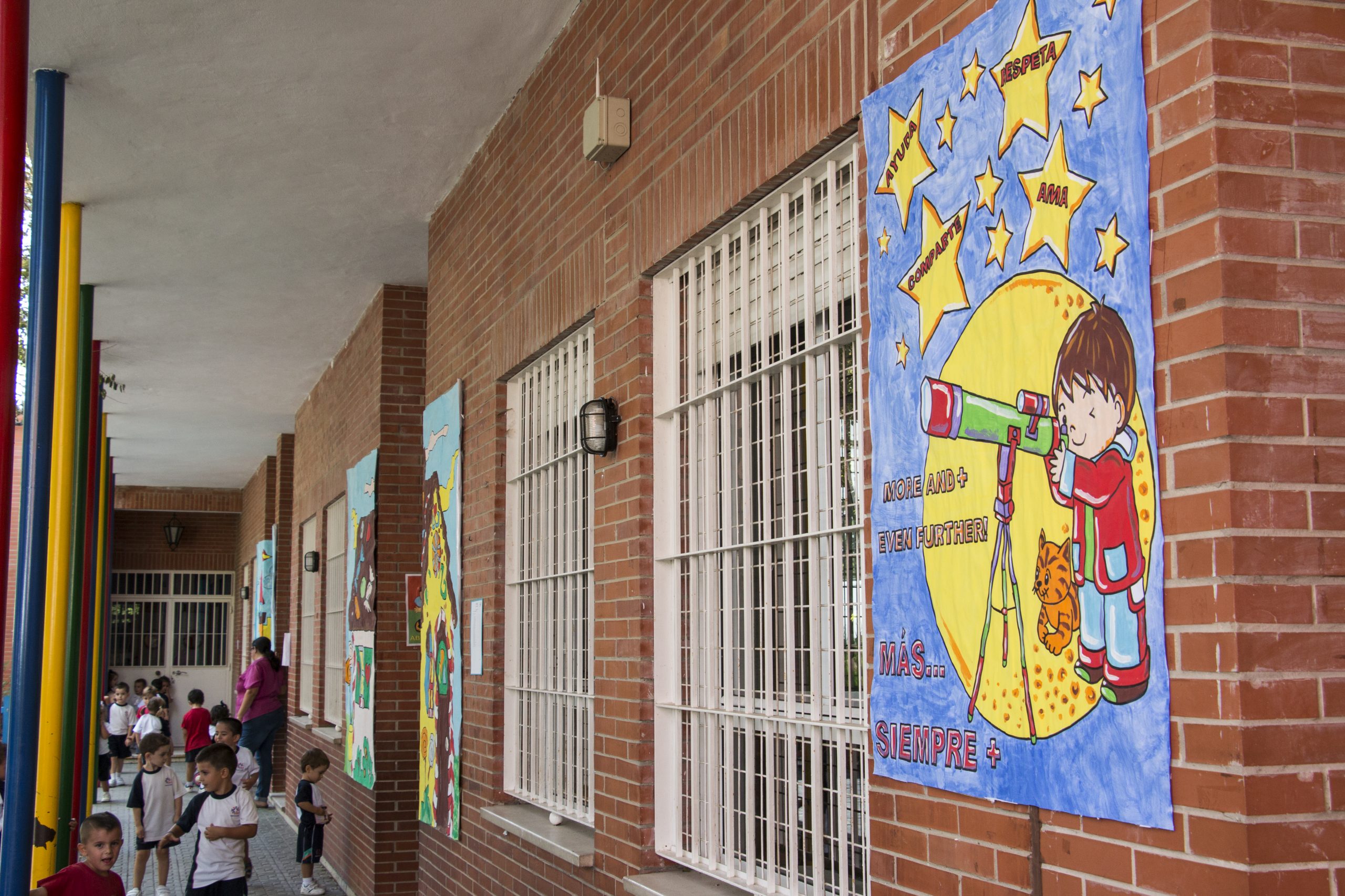 El centro se encuentra enclavado en una finca de 12.000 m2 y está dividido en cinco edificios: Infantil, Primaria, Secundaria, Estimulación Temprana y Pabellón deportivo con salón multiusos. Consideramos que la ubicación de los distintos espacios y la organización de las aulas y los horarios repercute positivamente en la convivencia.